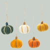 Brighten up your space with our Assorted Hanging Felt Pumpkins - a festive burst of autumn colour to celebrate the cosiest season of the year. Each pumpkin is needle felted by hand and strung on natural twine, ready to hang anywhere from door handles and hooks to autumnal wreaths and seasonal branches. Choose from five rich, earthy colours to mix and match or display as a full set. Lovingly handcrafted in Nepal by skilled artisans using traditional felting techniques, these little pumpkins are made from 100% sustainable New Zealand wool and are completely plastic-free.
