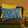 The Blue Embroidered Country Garden Cushion is a joyful celebration of colour and craftsmanship. Set on a rich blue base, it features bright floral embroidery framed by wavy white diamond motifs, all stitched using a freehand chain-stitch technique that gives each piece a beautifully expressive, handcrafted feel. Includes plain reverse side.
