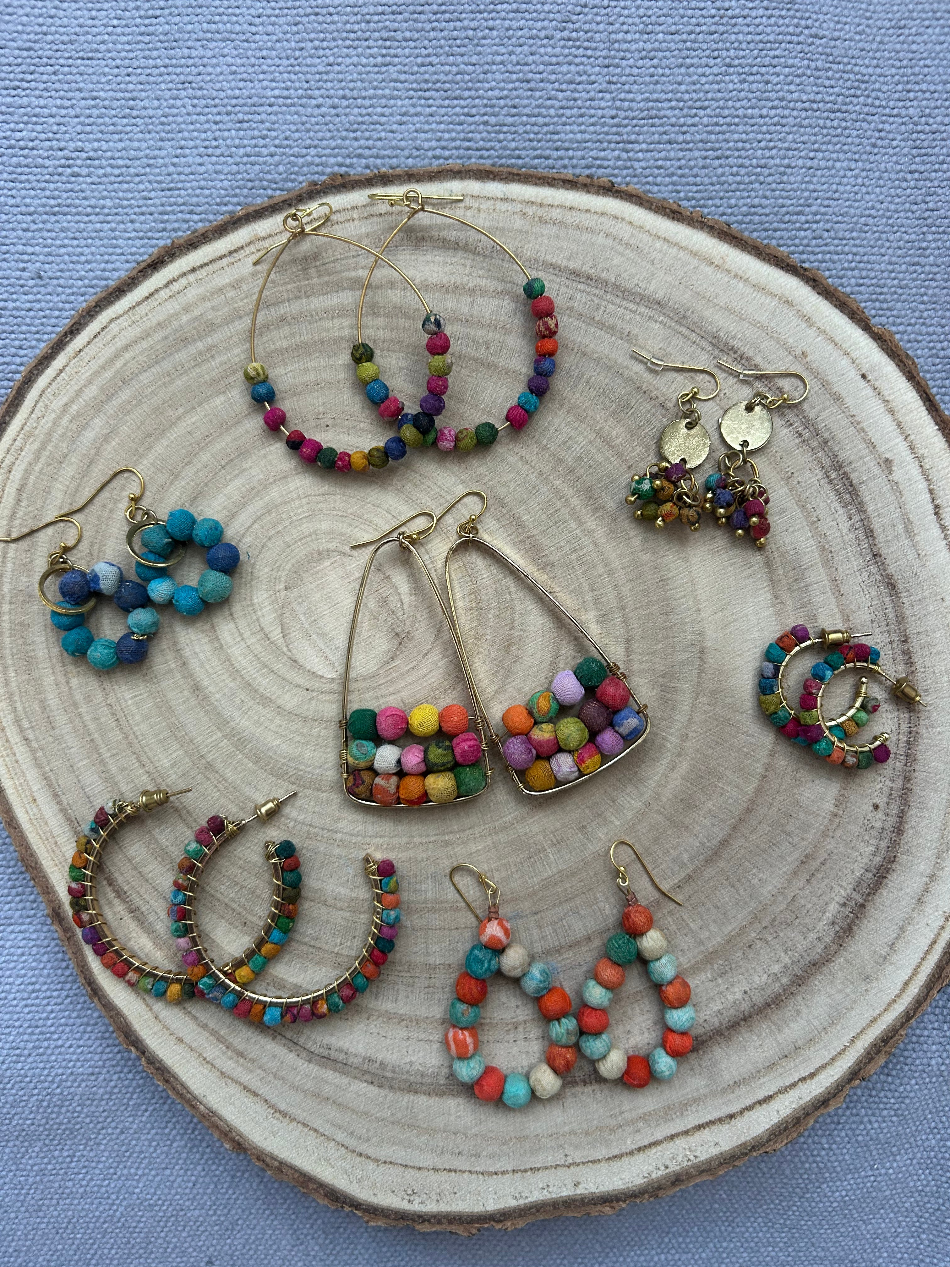 Celebrate creativity, community, and conscious design with this vibrant collection of ethical jewellery and accessories handcrafted in India. Each piece is made using repurposed sari and kantha textiles and wooden offcuts from furniture factories - transforming waste into beauty while supporting a fairer future.
