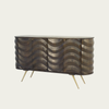 Crafted from solid mango wood, this retro-inspired sideboard blends artistry with everyday practicality. Its four doors are carved with a flowing wave pattern, adding gentle movement and texture to an otherwise clean, modern silhouette. Warm natural tones highlight the beauty of the wood, while brass-coloured legs and matching door pulls lend a subtle touch of elegance.