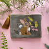 Bring a little woodland wonder to your everyday with this enchanting Embroidered Garden Rabbit Purse. Crafted from dark grey velvet with a soft blush pink reverse, it features a beautifully stitched rabbit nestled among florals and leafy details, creating a scene full of gentle charm. Subtle bead accents add a glimmer of magic, catching the light without overpowering the design.