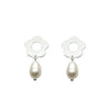 Delicate and elegant, these Flower Shape & Natural Pearl Drop Earrings add a soft, feminine touch to any outfit. Featuring a charming floral outline stud and a natural pearl drop, they strike the perfect balance between playful and refined. Available in gold or silver, each pair is designed for comfort with a secure and lightweight fit.