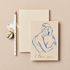 A beautifully minimal greeting card in nude pink, adorned with expressive hand-painted blue figures and elegant gold foil lettering on both the front and back. Thoughtfully left blank inside for your personal message, and paired with a coordinating soft pink envelope for a refined finish. A perfect card for expressing your love on anniversaries, Valentine's Day, or just because.
