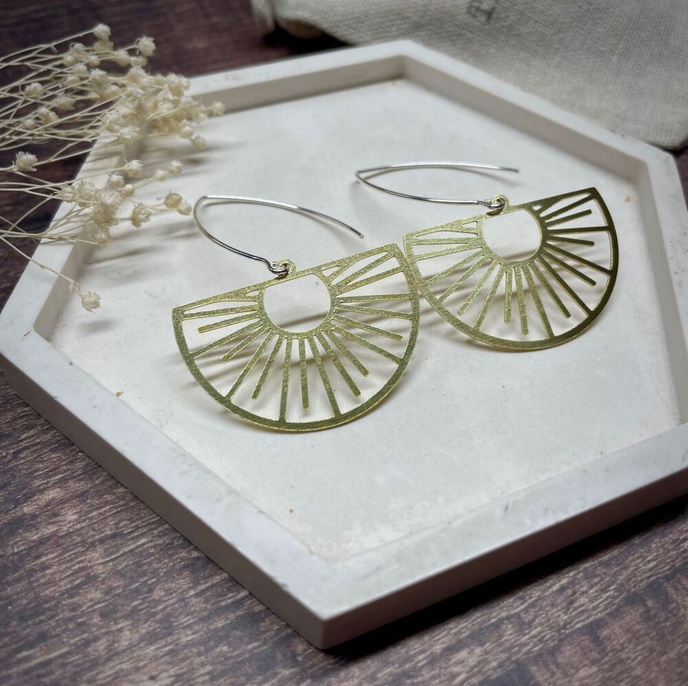 Make a statement with our bold, large brass earrings - each uniquely shaped and beautifully eye-catching. Whether you choose a hoop or hook style, these pieces are designed to turn heads. The brass shapes are paired with either a 20mm sterling silver hoop or a 25mm drop hook, depending on the style.
