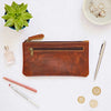 Handcrafted from genuine leather by skilled artisans, this beautiful clutch purse is both timeless and practical. Designed with enough space to hold your cards, coins, and small essentials, it’s the perfect companion for everyday use or evenings out. Versatile in style, it can also double as a make-up bag or a sleek pencil case. Available in a range of vibrant colours to add a pop of personality to any outfit, this purse blends craftsmanship, function, and effortless elegance.
