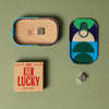 Keep luck close at hand with this Metal Dice Travel Tin. Inside the colourful pocket-sized tin sits a pair of solid metal dice, finished in silver with debossed number dots for a touch of timeless style.