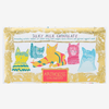 The bar is wrapped in vibrant coloured foil and tucked inside a recyclable envelope, showcasing the joyful Miaow for Now cat-themed artwork created by ARTHOUSE Unlimited’s collective of neuro-diverse and physically supported artists. Framed in shimmering gold, the design is a playful celebration of feline charm and creativity.