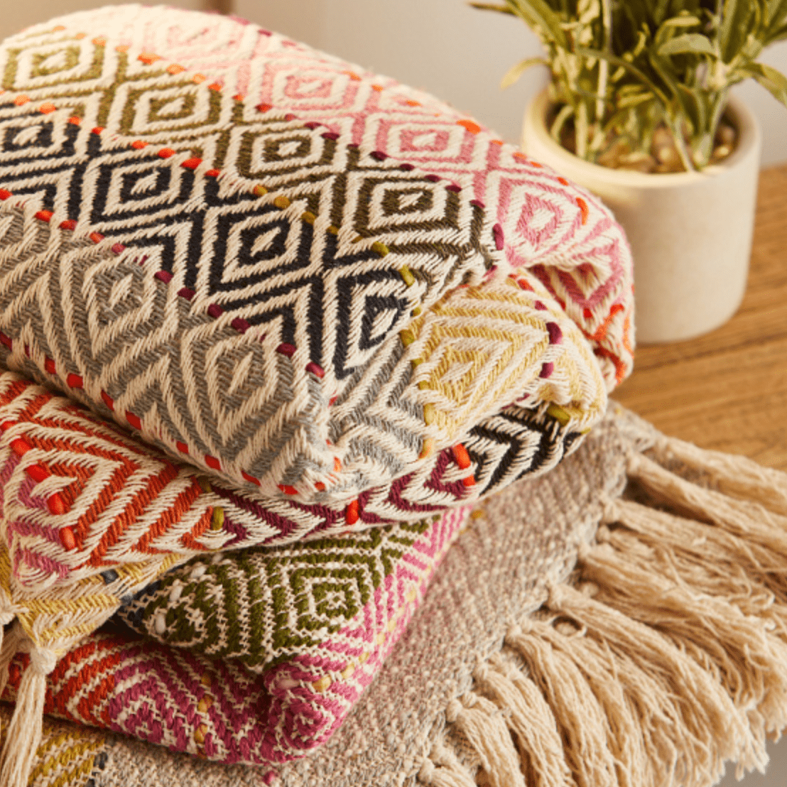 Multi Diamond Handloom Cotton Throw
