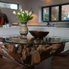 Make every meal memorable with the Organic Teak Root Glass Top Dining Table. Handcrafted from natural teak root, each table showcases its own unique grain and character, creating a one-of-a-kind centerpiece. The polished root base pairs beautifully with the toughened round glass top, combining rustic charm with modern elegance. Available in two sizes, it fits seamlessly into both compact and spacious dining areas, offering a stylish and durable solution for everyday dining or special gatherings. Elevate your home with this striking, handcrafted table.