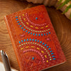 A perfect fusion of craftsmanship and creativity, this Embroidered & Embossed Leather Notebook makes a thoughtful gift for any writing lover. Its front cover is hand-embroidered with intricate cotton accents, while the back features an embossed pattern of circles framed within squares. Both sides are finished with beautifully detailed geometric borders. Filled with plain recycled cotton pages, it’s an eco-friendly keepsake that celebrates traditional artistry and mindful design.