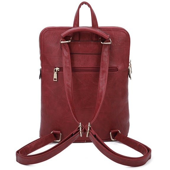Stylish, versatile, and effortlessly practical, our Square Faux Leather Backpack doubles as a handbag thanks to its two sets of handles. The front zipped pocket and multiple internal compartments keep your essentials organised, while the roomy main section is perfect for a small laptop or daily necessities. Crafted from soft faux leather, this bag combines contemporary design with everyday functionality, making it a wardrobe staple.