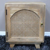 Blending natural textures with timeless design, this bedside cabinet features a beautifully arched rattan door framed in warm teak wood. Behind the cupboard, two internal shelves provide practical storage for books, accessories, or nighttime essentials. The brass-toned knob adds a refined finishing touch, making this piece as functional as it is elegant. A versatile addition that brings both charm and character to your bedroom décor.