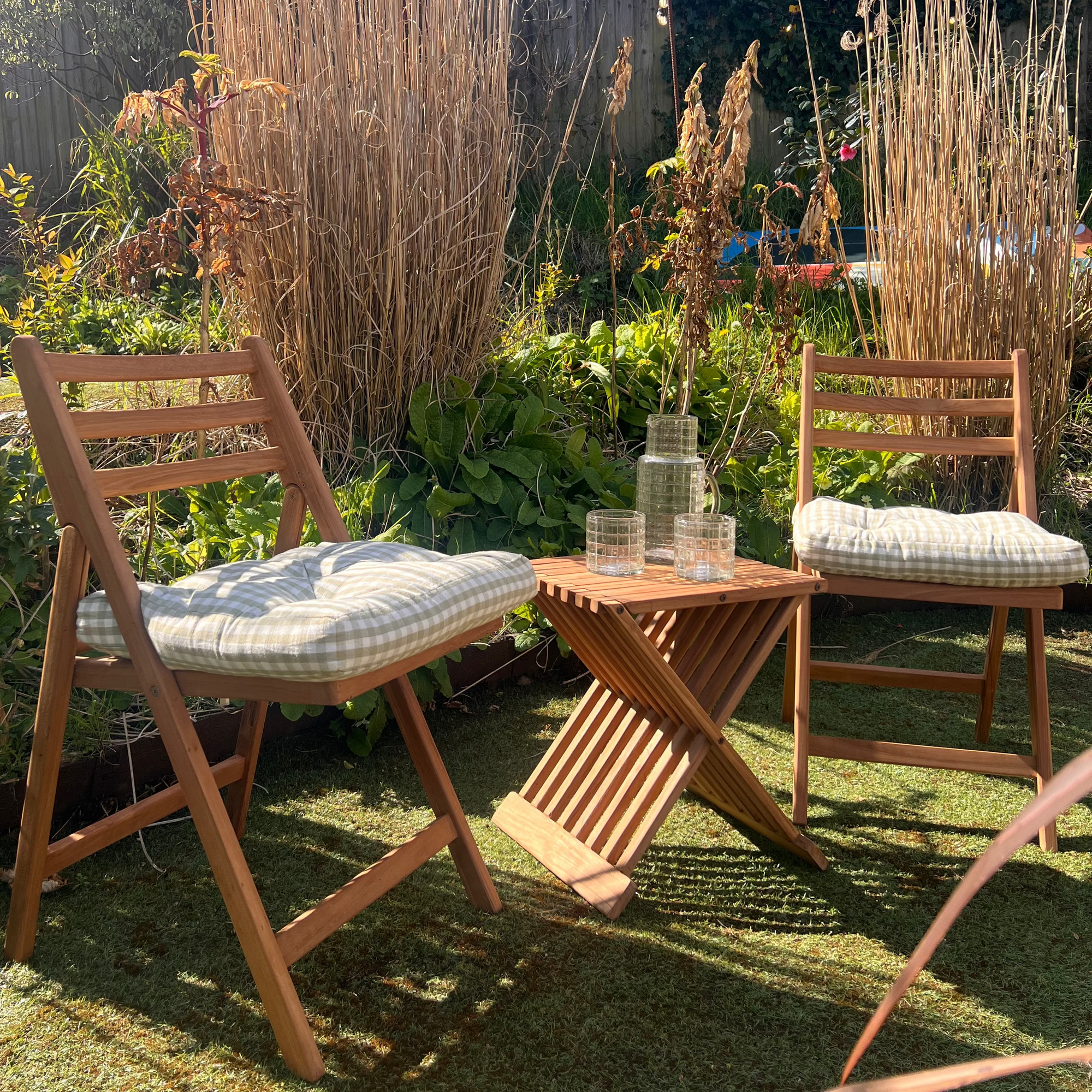 Maximise your outdoor space with this Teak Wood Folding Outdoor Table & Chairs Set. Crafted from durable teak, the set features a compact folding design ideal for small patios, balconies, or gardens. The slatted table and chair surfaces provide a modern, stylish look while allowing easy drainage and ventilation. Lightweight yet sturdy, this set is both functional and attractive, perfect for casual alfresco dining or morning coffee outdoors. When not in use, the table and chairs fold flat for convenient storage, making it a practical addition to any outdoor area. Enjoy a versatile, space-saving solution without compromising on style.