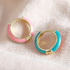Brighten your summer style with these colourful two-tone enamel huggie hoop earrings, crafted from gold-plated brass. Featuring a sleek, curved shape, each earring showcases a vibrant enamel finish split vertically down the middle, creating a striking and playful contrast.