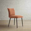 Elevate your dining space with the Valerie Terracotta Dining Chair. Featuring an elegantly arched backrest and plush sponge seat, this chair blends comfort with contemporary style. The rich terracotta upholstery adds warmth and character, while the sleek black metal legs offer a modern contrast and sturdy support. Perfect for creating a cosy yet sophisticated dining atmosphere, it’s a standout choice for both everyday meals and special gatherings.