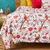 Refresh your space with the White Throw With Birds Of Paradise Design. Made from soft cotton, this elegant throw features a vibrant bird of paradise print, screen-printed by skilled artisans. Backed in lightweight ivory cotton and finished with kantha stitching in pink and white thread, it adds a touch of sophistication and comfort to any room. Ideal for styling a bed, draping over a sofa, or brightening tired furnishings.