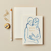 Understated and elegant, this greetings card features a minimal design in a refined palette of blue and cream. Two illustrated figures are delicately framed by the message "With Love" in gold foil lettering, creating a sophisticated and heartfelt sentiment for any occasion.